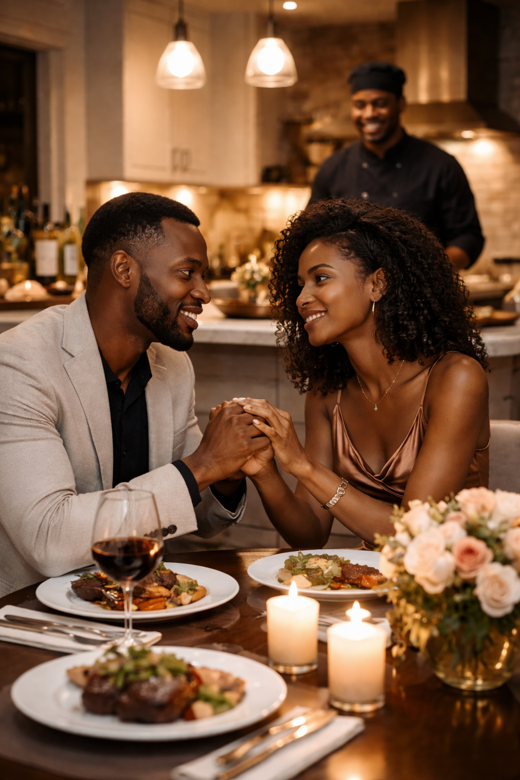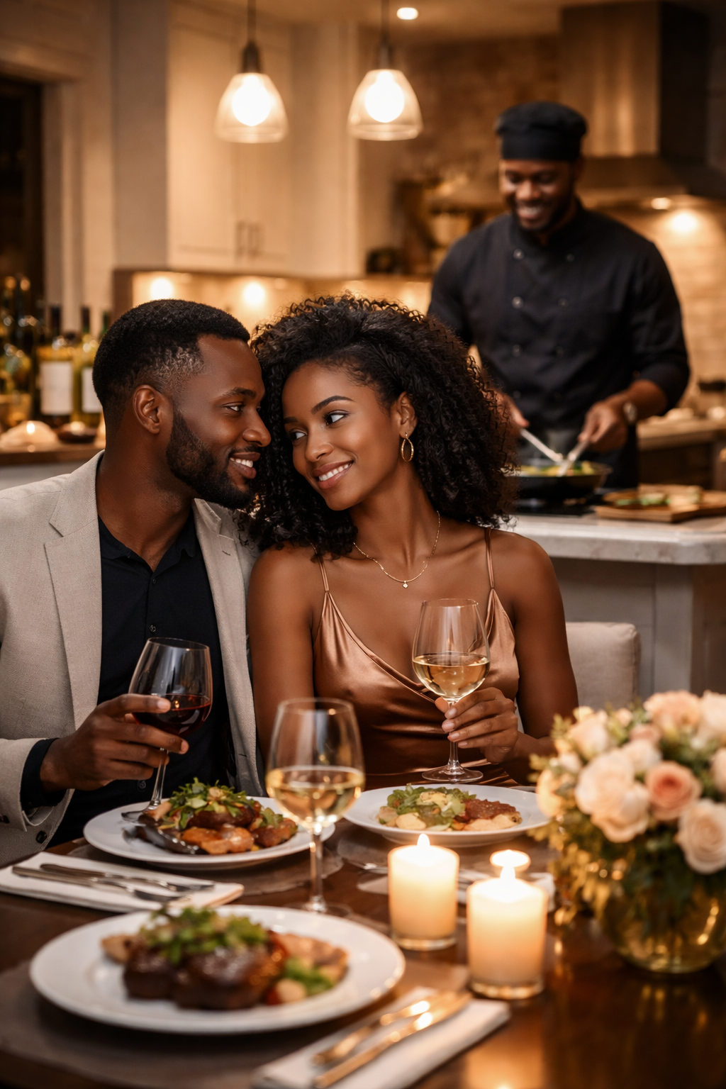 The chef is preparing whatever you requested. Maybe it’s that pasta dish you both loved on your trip to Rome, or a street food pasta you had in Surulere. Perhaps it’s a fusion of your favorite cuisines, her love of Thai flavors meeting his passion for Mediterranean cooking. Or it could be a recreation of your first date meal, elevated with techniques and ingredients you never imagined possible.